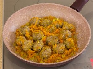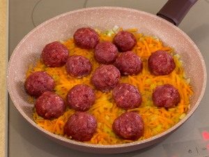- Stavite mesne okruglice i pržite, miješajući, dvadesetak minuta.