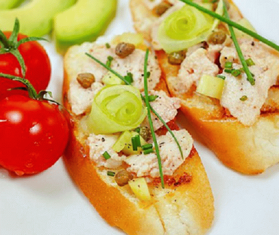 Lijepe i ukusne bruskete od jetre bakalara su izvrsne za do vašeg blagdanskog stola. Da biste napravili ovo predjelo samo pržite kriške bageta u maslinovom ulju i stavite svi sastojci na vrhu.