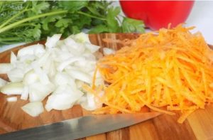- Oljuštite luk s mrkvom.