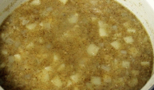 - U šerpicu koju nalijemo vodu, u nju sitno stavite leću isjeckani luk, krompir na kockice i češnjak (ne režemo ga, već stavljamo celog karanfila).
