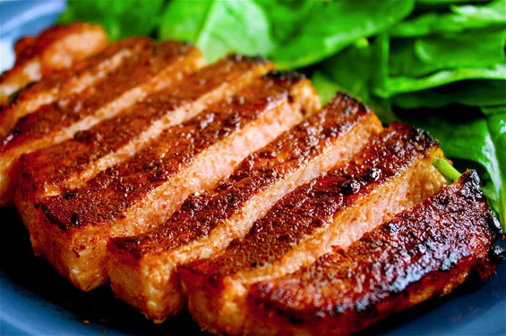 Paprika s sokom aromatizirana u soku s dodatkom pire krumpira i povrtna salata od svježeg paradajza, krastavca i luka sa maslinovo ulje. Svinjetinu po želji možete nadopuniti bilo kojom začini po ukusu.
