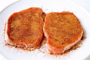 U zdjeli pomiješajte papriku s češnjakom u prahu i solju. Komadi operite svinjsko krilo, osušite ga papirnatim ručnicima i velikodušno pospite pripremljenom smjesom.
