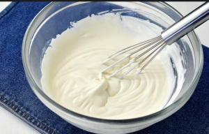 - U drugoj posudi povežite jaja, vanilin, 2 kašike. brašno, šećer i pavlaka. Premažite punjenje do homogene konzistencije.