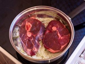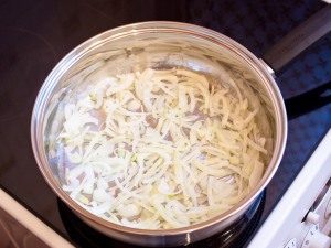 - U gulaš na dobro zagrejanom biljnom ulju, lagano pržiti luk, nasjeckan na trakice.
