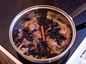 - Dodajte seckane suve šljive i štapić cimeta.