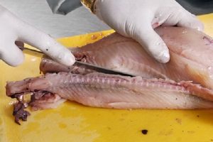 Prvo što prelazimo na rezanje ribe. Trebate odseći glavu peraje i rep, a zatim pažljivo odvojite filete od grebena. Od fileta lagano pokupi sve kosti. Stavite meso u frižider, ona će joj biti potrebna kasnije.