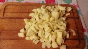 - Ogulite krompir i narežite ga na kockice.
