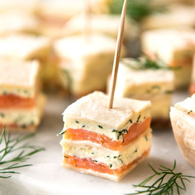 Podmažite jednu tortiljinu tortu tankim slojem smjese sira, stavite pripremljenu crvenu ribu na vrh (½ dela), namastite smjesu sa debelim slojem i pokriti drugim kolačem. Primjeni ponovo tanki sloj smese, dodajte preostalu ribu, zatim debeli sloj smjesu od sira i zatvorite posljednji kolač.