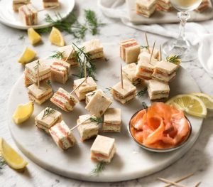 Zamotajte tortilje napunjene hvataljkom i ohladite najmanje 4 sata. Zatim oštrim nožem izvadite tortilje isjeckajte na kockice, svaki komad probodite čačkalicom, stavite na tanjir i poslužite na svečanom stolu.
