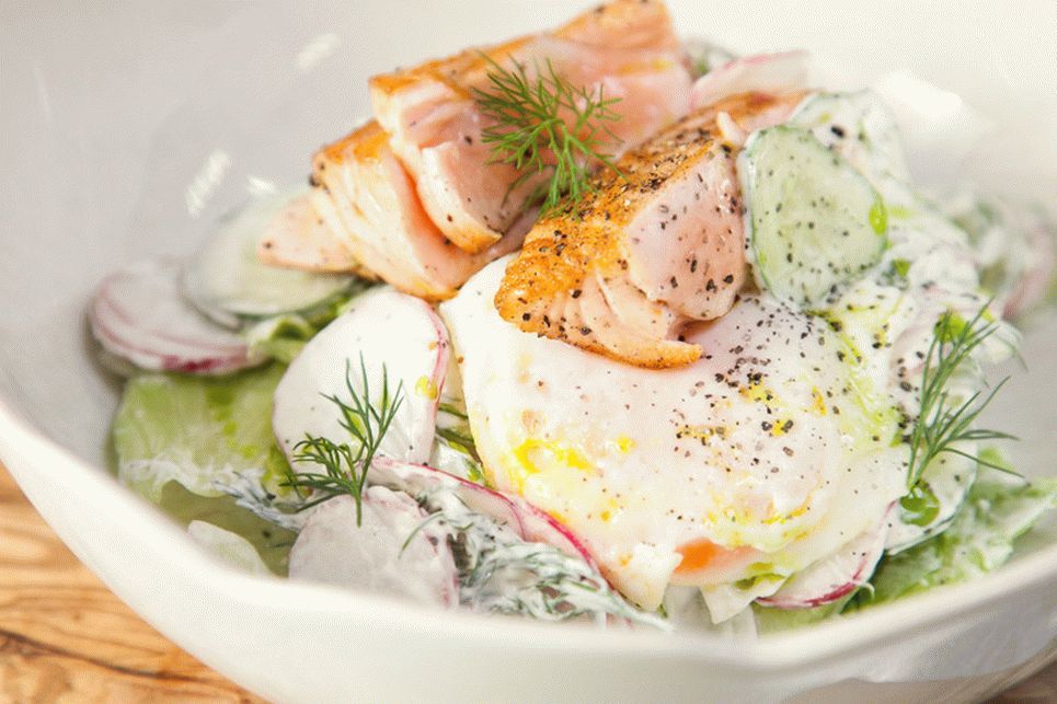 Jeste li znali da se losos može napraviti i sa kiselim vrhnjem? Savjetujem kod kuće skuhajte ukusnu ljetnu salatu s lososom i poširanim jajetom.