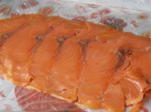 Želatinu razređujemo u vodi prema uputama na pakovanju. On zamotati lagano posuti tanko narezanim slanim losos.