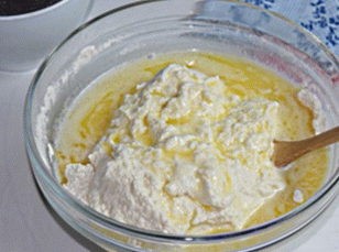 - U brašno dodajte rastopljeni puter. Dodajte mu nabubri kaša. Dobro izmešajte. Tijesto za našu mangu je spremno.