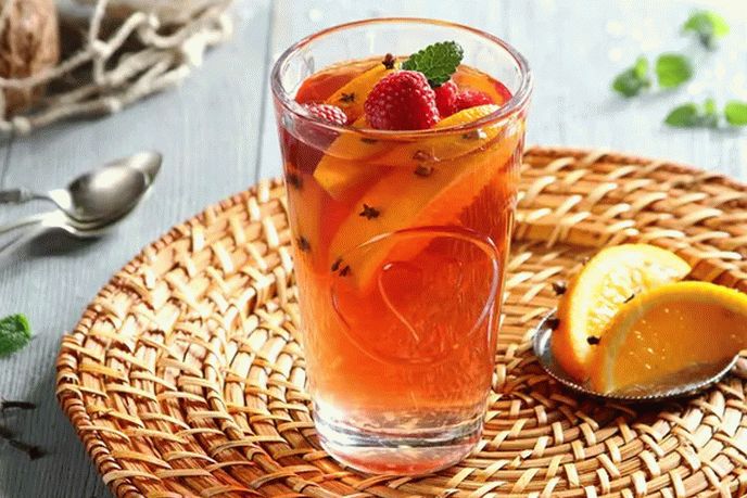 Dok su se vršile manipulacije sa pomorandžom, čaj je već bio unešan. U čaše sipati 2 kašike soka od maline, staviti kriške šećera i pomorandže. Nakon 2-3 minute, ovo možete koristiti odlično piće. Čaj se može ukrasiti po volji svježe maline i melem limuna.