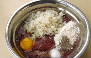 - U mleveno meso dodajte brašno, sol, rižu, jaja i papar.