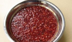 - Jetru s lukom pronesite kroz rešetku mljevenja mesa.