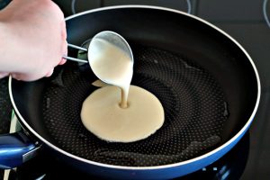 Pržite tanke palačinke. Dok se pripremaju, vodite računa kuhanje preliva.