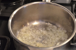 - U tavi zagrijte maslinovo ulje i u njemu pržite luk do mekoće.