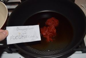 - U dubokoj tavi pomiješajte ocat, preostali sojin sos (4 kašike) i pasta od paradajza.