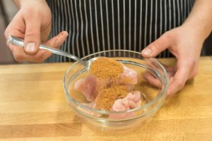 Tikvice stavite u manji tanjur i pomešajte ih sa manjim količina začina i ulja.