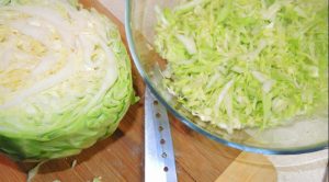 - Kupus sitno nasjeckajte, pospite solju i pirjajte rukama kupus je dao sok.