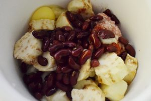 - Mljevenom mesu, sve, dodajte grah, jaje i pulpu od patlidžana samljeti mikserom.