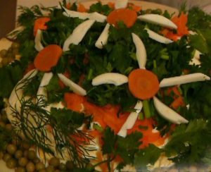 - Sitno nasjeckajte zelje i pospite cijelu salatu. Ukrasi želja.