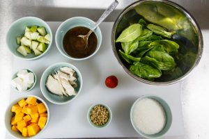- Špinat operite, osušite i stavite u posudu, a zatim dodajte pinjole.