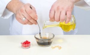 - Prvo što radimo je pripremiti preljev. Mix maslinovo ulje, balzamični sirće i med. Mix za homogenost.