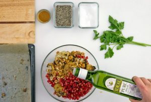 - Karfiol pomiješajte sa pola kašičice soli, crna paprika, maslinovo ulje (3 kašike).