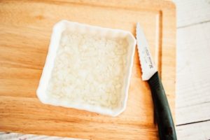 - Luk narežite na male kockice i prelijte kipućom vodom. Kad luk ohladite, morate je osušiti i staviti na sloj piletine, masti majonez.