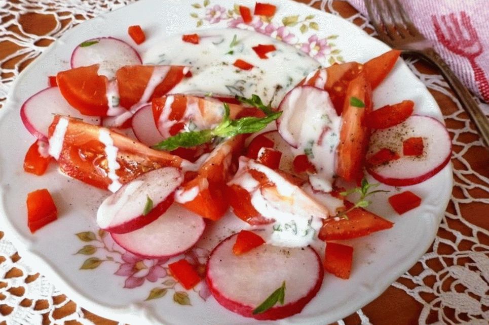 Ukusna salata od rotkvica i rajčice sa začinjenim sosom od jogurta – Ovo je jednostavna salata koju je lako i brzo pripremiti kod kuće. Njegovu Možete napraviti užinu bez da naštetite figuri.