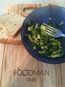 - Izrežite avokado na komade i gnječite vilicom dok ne postane glatko konzistenciju, špinat sitno iseckati i pomešati sa avokadom.