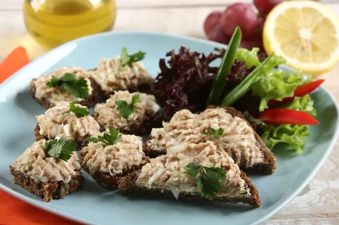 Vrlo mirisni i ukusni dimljeni sendviči skuše, krem sir, majonez i luk. Takav zalogaj može se pripremiti za zajedničko pivo s prijateljima kod kuće.