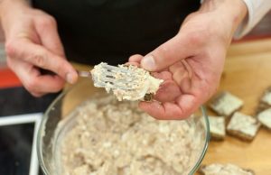 Izrežite kriške hleba na kvadrate, a možete koristiti i trouglove, namažite ih uljem i premažite pripremljenom smjesom od dimljenih skuše.