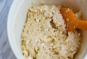 - Žumanjke pomiješajte sa sirom, brašnom, mljevenim jabuke i med.