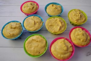 - Tijesto širimo u silikonske kalupe, šaljemo u rernu pola sata. Zagrejati pećnicu na 180 stepeni.
