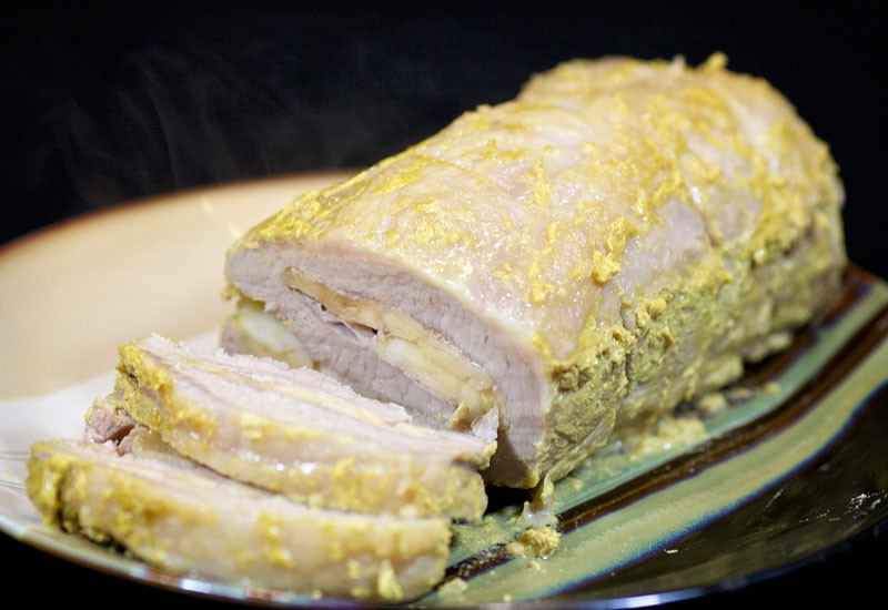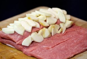 Svečano jelo može se pripremiti kod kuće od svinjskog fileta u obliku rolne s jabukama u foliji. Pečeno meso natopljen sokom od jabuke i ispada nevjerovatno ukusno. Za učinimo ga još mirisnijim, svinjetini dodamo senf.