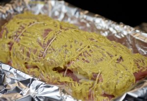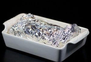 Umotati svinjetinu u foliju i poslati u prethodno zagrijanu rernu na 180 stepeni 1 sat 20 minuta.