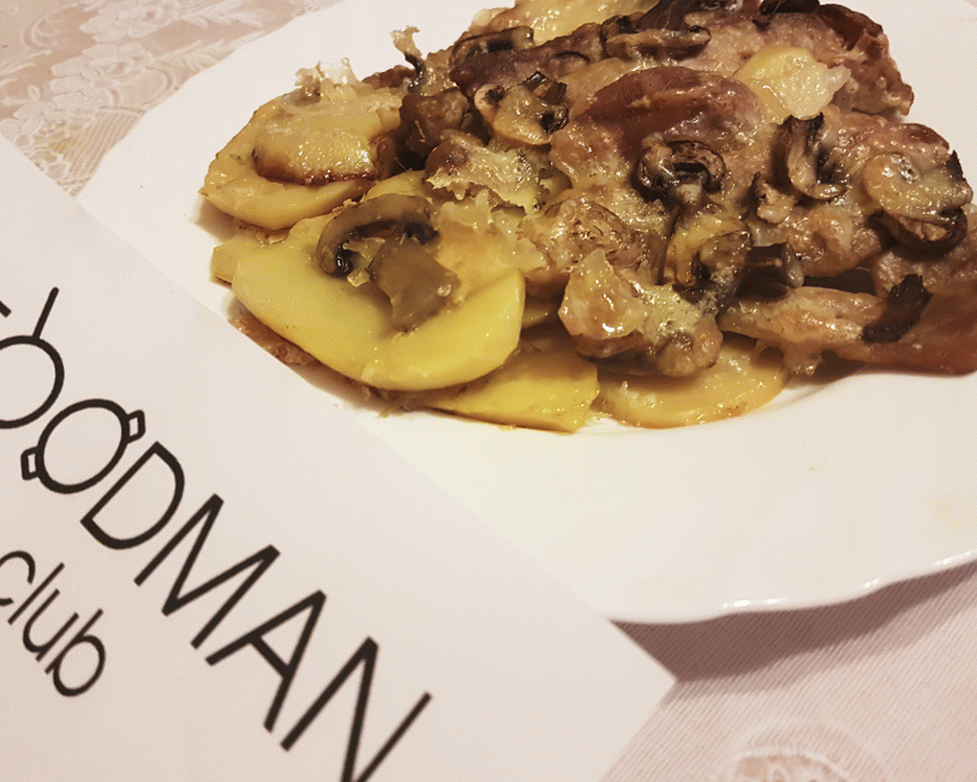 Meka i ukusna svinjetina kuhana kod kuće s krompirom i kapa s sirom i gljivama, divno jelo za svečanim stolom. Krompir se natapa u mesnom soku i prži odozdo zahvaljujući da meso stavljamo odozgo, a ne obrnuto.