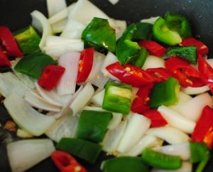 - Moje povrće. Nasjeckajte čili papričicu, slatku papriku, vlasac i šalotka, češnjak utisnuti kroz prešu.