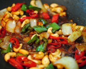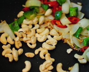 - Dodajte indijske kaše i pržite još minutu.
