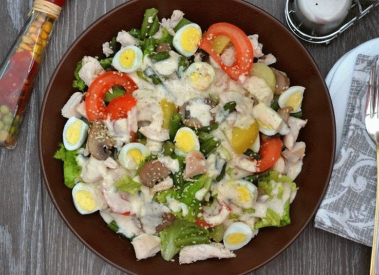 - Kombinirajte sve sastojke, lagano promiješajte i posolite na ukus. Ukrasite polovinama prepelice.
