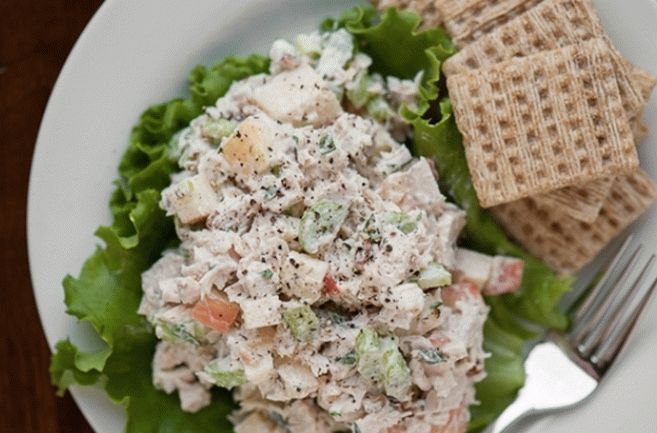 - Dobivenu salatu začinite majonezom i poslužite.