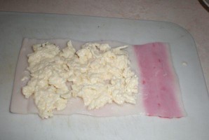 - Otvaramo štapove rakova i nanosimo punjenje. Isključujemo čvrsto u rolu.