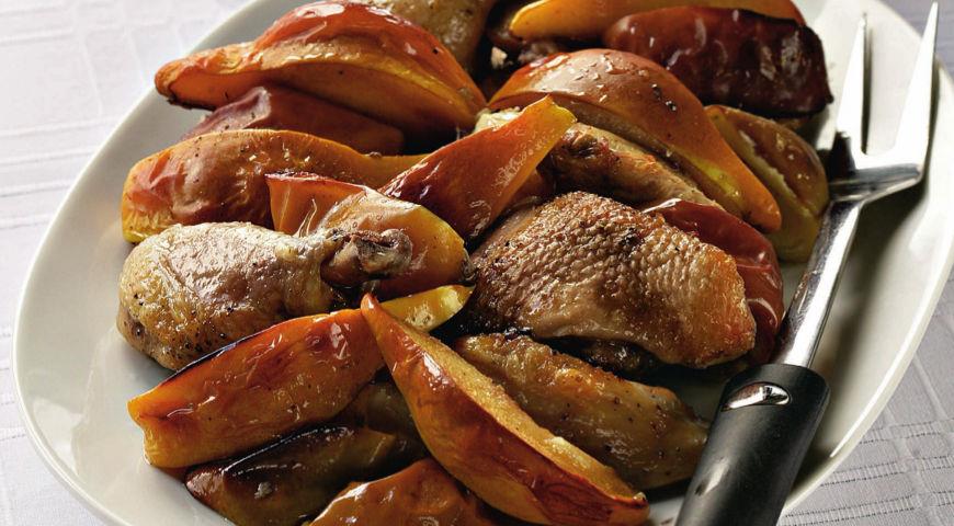Zanimljiv recept za kuhanje kod kuće u pećnici ukusnih patki i piletina s voćnom notom jabuke i dunje.